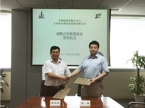 2017年5月15日,江西省水利水电建设有限公司与中钢设备有限公司战略合作框架协议签约仪式在北京举行。公司董事长王元旦与中钢设备有限公司总经理王建代表双方签署了战略合作框架协议。公司海外公司副总经理熊昊冠和中钢设备能源与基础设施部副部长闫永军、国际市场部副部长王思奇、市场主管姬晓军参加签字仪式。王建表示中钢公司有着海外平台优势,江西水建拥有水利水电、房建和市政领域的技术优势,希望双方以此次战略合作签署为契机,借助各自在资源、业务等方面的综合优势,在巴基斯坦市场以及其他国别市场携手共进,推进重点项目落地,共谋发展。公司董事长王元旦对中钢设备的支持表示感谢。他表示此次合作将会是一个友好的开端,真诚希望双方在国家“一带一路”战略指引下进一步加深交流,探索多方位、深层次合作,实现互利共赢。