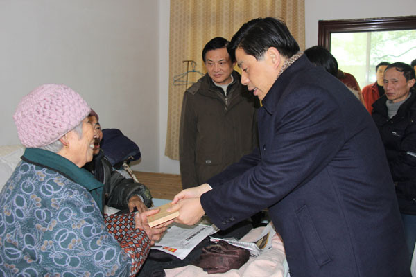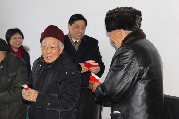 寒冬腊月,雪花飞舞。1月20日下午,水利厅党委书记、厅长孙晓山率厅人事处处长周江红、厅离退休干部处副调研员金光荣、曾三荣一行4人冒着严寒来我公司生活基地慰问离退休职工。公司董事长总经理王元旦、党委副书记王延军、生活基地管理处相关负责人陪同慰问。
